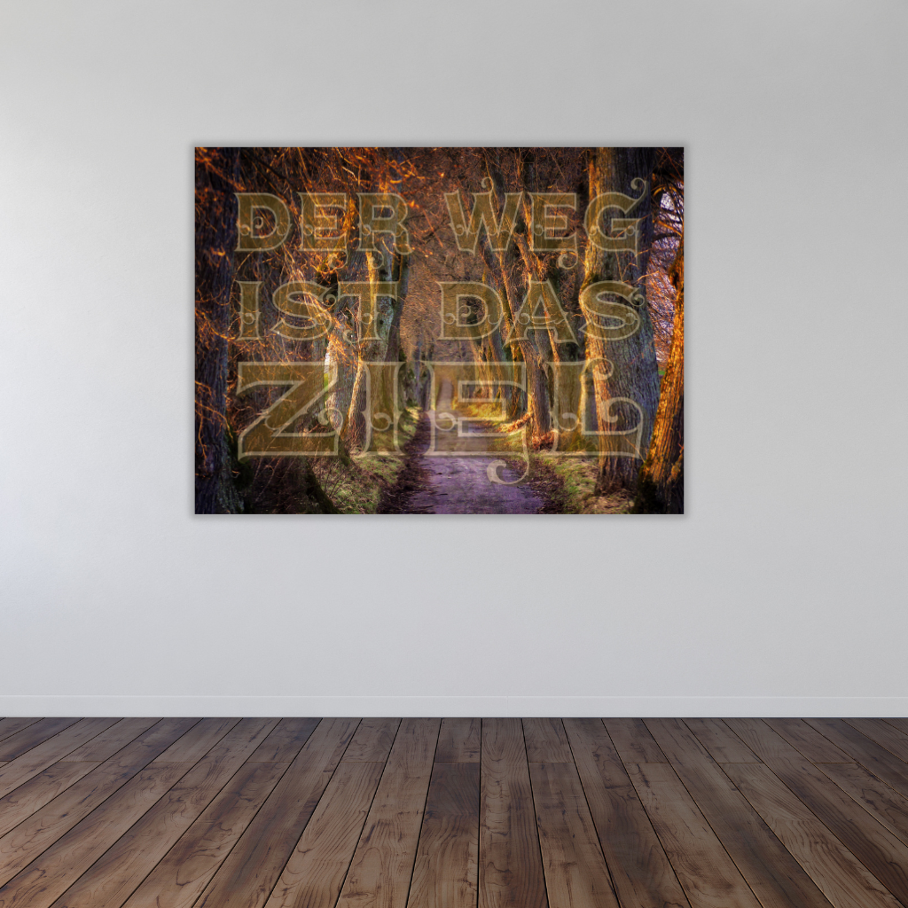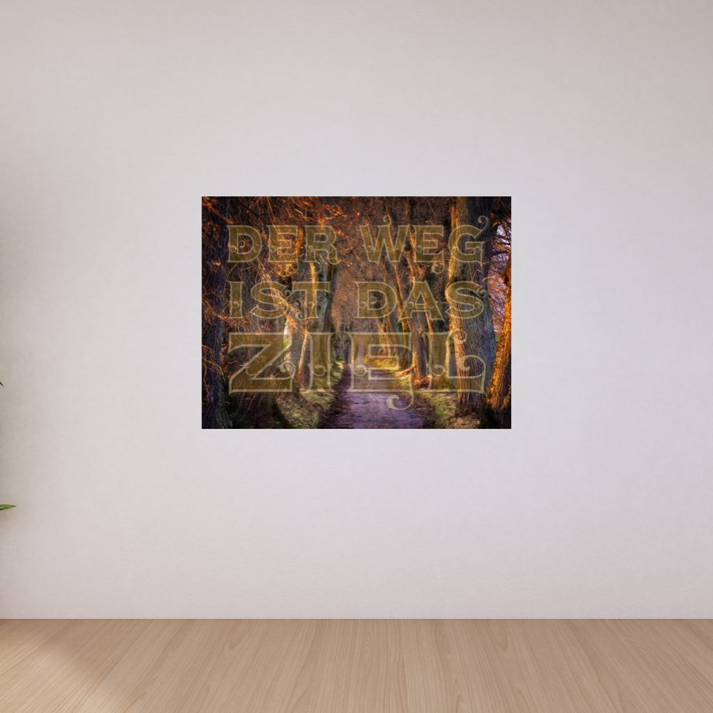 Experience the profound philosophy of life’s journey with the metal wall mural “The Path is the Destination – Therefore, Go Ahead.” This captivating work of art features concise, expressive text set against a mesmerizing cosmic backdrop that showcases the swirling beauty of a distant galaxy. It’s a powerful reminder that growth and fulfillment come not only from achieving goals, but from continuous striving, discovery, and action. This work of art is perfect for inspiring adventurers, entrepreneurs, or anyone pursuing their own individual path. It fills any space—from the home office to the living room—with meaning, wonder, and motivation. Let it guide you to appreciate every step of your personal universe.