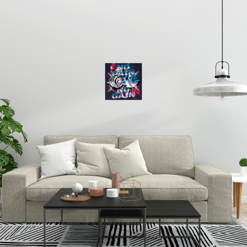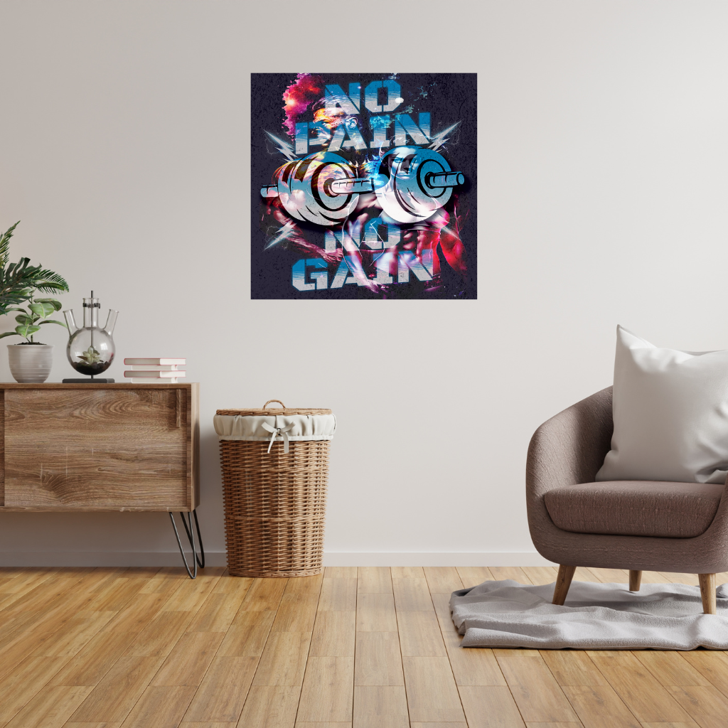 YEntfesseln Sie Ihre innere Stärke mit diesem elektrisierenden „No Pain, No Gain“-Kunstwerk, das die Hingabe von Fitnessbegeisterten feiert. Mit dynamischen Figuren, die mit Hanteln an ihre Grenzen gehen, fängt dieses Design die pure Energie und Hingabe ein, die für ein effektives Training erforderlich sind. Der lebendige, fast kosmische Hintergrund sorgt für zusätzliche Intensität und macht dieses Werk zu einem kraftvollen Motivator für alle, die ihre Fitnessziele erreichen wollen.