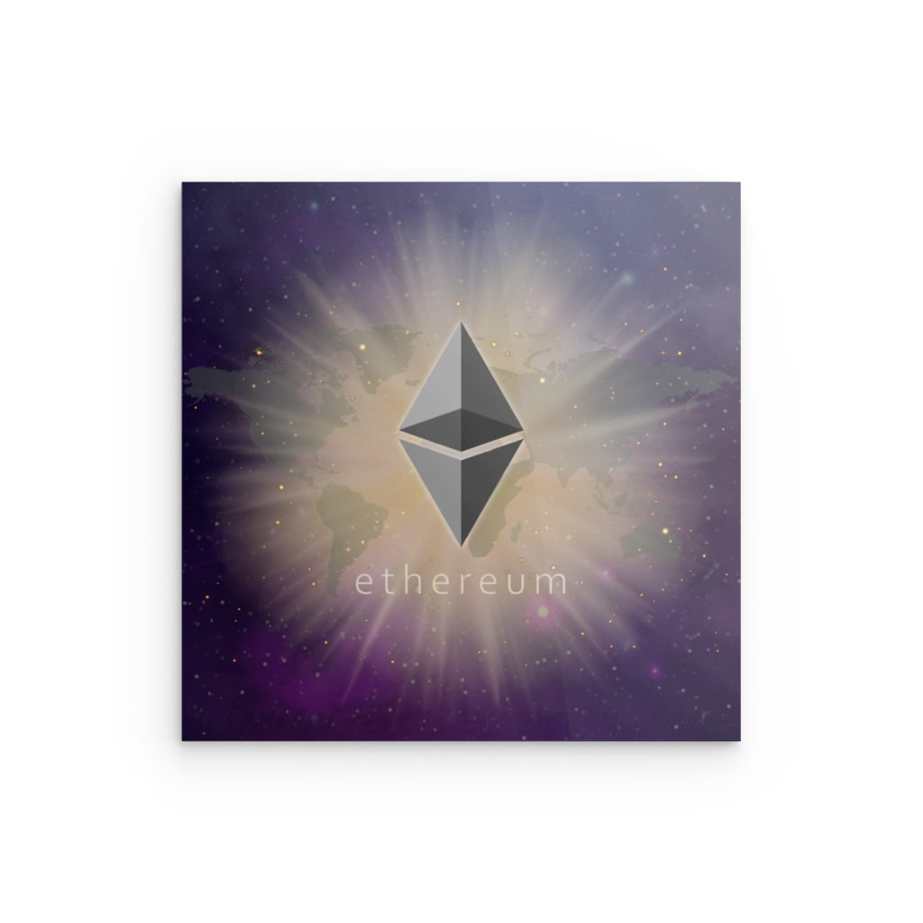 Erleben Sie die universelle Reichweite dezentraler Technologie mit diesem faszinierenden Ethereum Cosmic Universe Metallwandbild! Dieses kraftvolle Kunstwerk zeigt das ikonische Ethereum-Logo, dessen Kern ein strahlendes Licht ausstrahlt und Innovation und eine dezentrale Zukunft symbolisiert. Die dezente Weltkarte vor einem atemberaubenden Sternenhimmel unterstreicht den globalen Einfluss und das grenzenlose Potenzial von Ethereum. Perfekt für Krypto-Enthusiasten, Blockchain-Innovatoren und alle, die von der transformativen Kraft des digitalen Finanzwesens fasziniert sind.