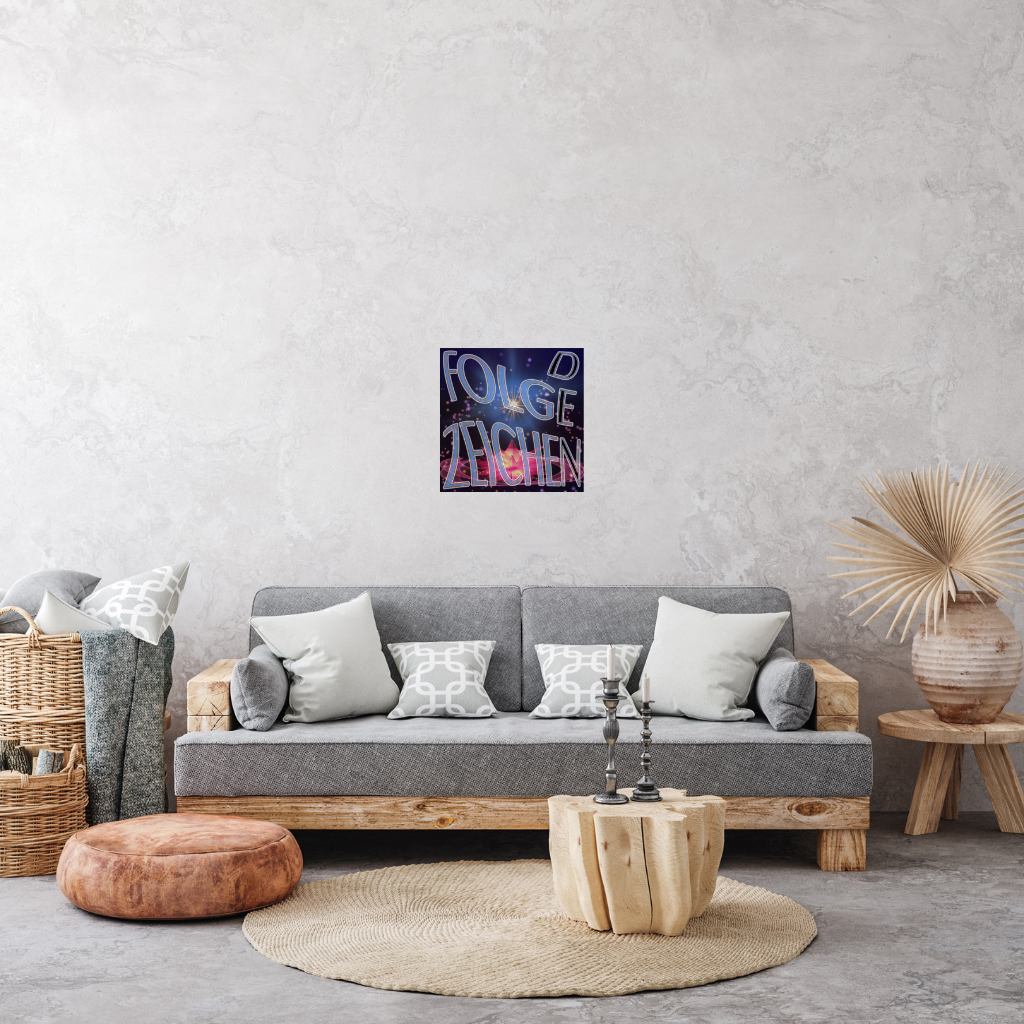 Transform your space with this stunning Follow the Signs Star Lotus metal wall mural. Its unique design, featuring the striking “FOLLOW THE SIGNS” lettering and a radiant star lotus in a cosmic setting, is vividly printed on an elegant composite panel. The lightweight black plastic core is encased in two ultra-thin aluminum sheets. This piece impresses with its striking yet understated look and fits perfectly into any modern design scheme.