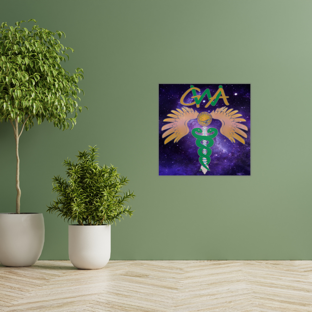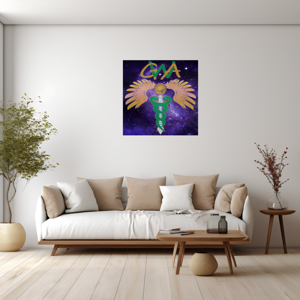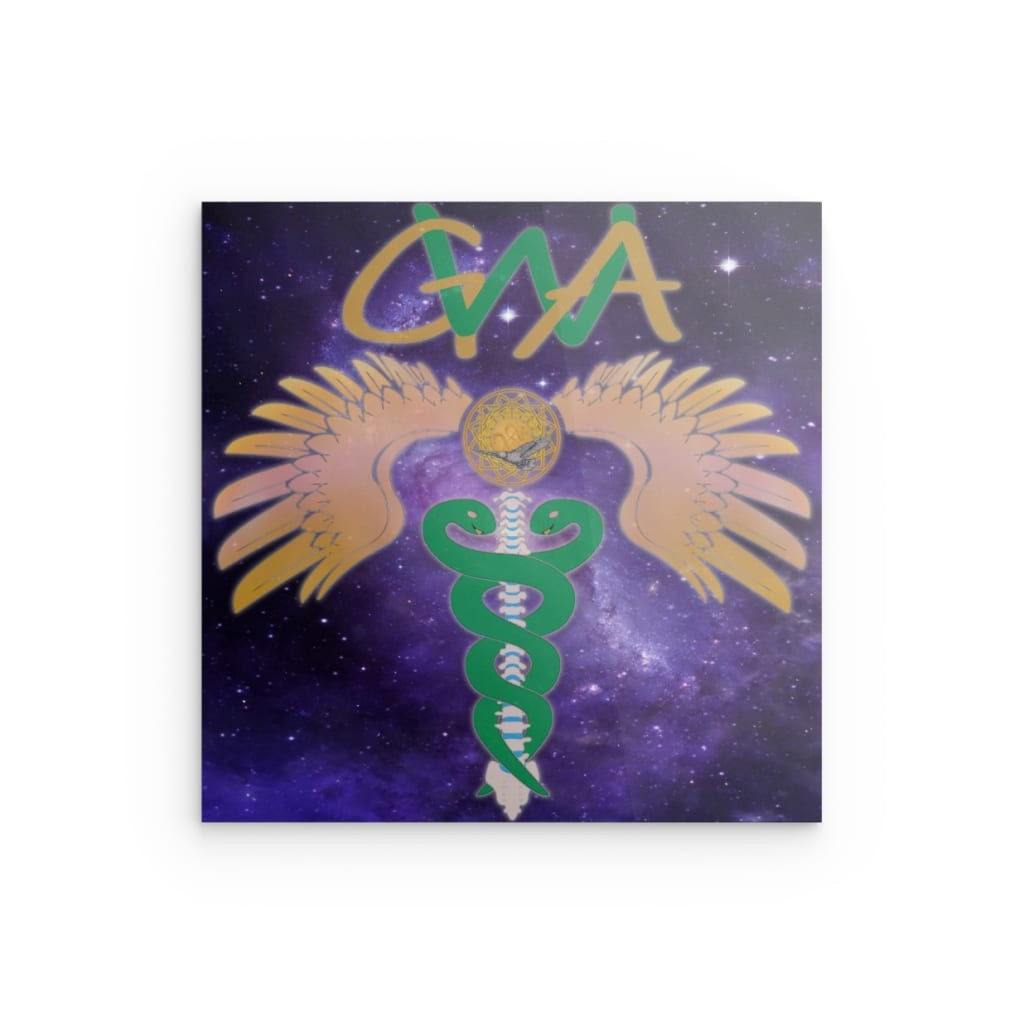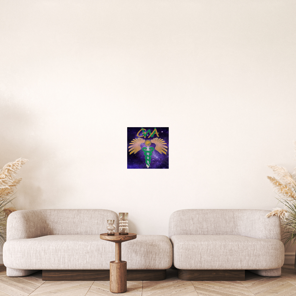 Verwandeln Sie Ihren Raum mit diesem atemberaubenden GWA Caduceus – Metallwandbild zur Wirbelsäulenausrichtung. Ihr einzigartiges Design, ein geflügeltes Caduceus-Symbol mit Wirbelsäulenmotiv vor kosmischem Hintergrund, ist leuchtend auf eine elegante Verbundplatte gedruckt. Der leichte schwarze Kunststoffkern wird von zwei hauchdünnen Aluminiumblechen umschlossen. Dieses Stück besticht durch seinen ausdrucksstarken und dennoch dezenten Look und passt perfekt zu jedem modernen Designkonzept.