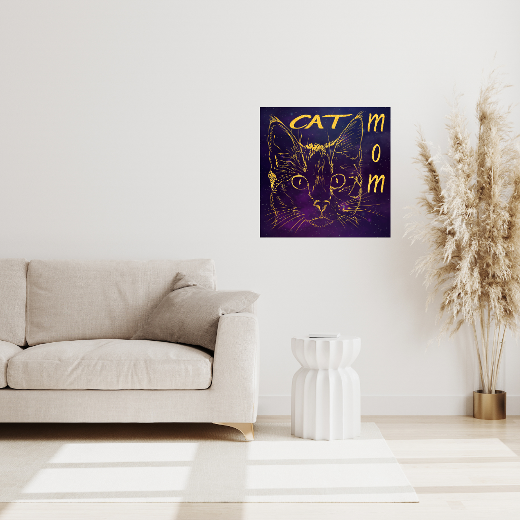 Für die Frau, die ihre schnurrbärtigen Begleiter pflegt, ist dieses „CAT MOM“-Kunstwerk eine perfekte Hommage! Der zarte goldene Umriss eines Katzengesichts leuchtet hell vor einem tiefvioletten, sternenbedeckten Kosmos und symbolisiert die unendliche Liebe einer Katzenmama zu ihren pelzigen Lieblingen. Das himmlische Motiv verleiht dem Kunstwerk eine magische Note und zelebriert die einzigartige Verbundenheit zu ihrer Katzenfamilie.